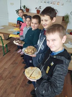 РЕКОРД "Найдовша колона учнів з млинцями" - 55 учнів.
